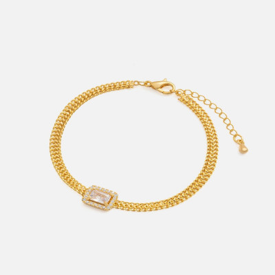 اسوارة نسائية بتصميم ملفت باللون الذهبي ، اسوارة تتزين بحلية في المنتصف مرصعة بحجر من الزركون اللامعة، اضيفي لمسه أنثويه راقيه الى طلتك مع هذا السوار، يمكنك ارتداء الاسوارة في كل الأوقات .