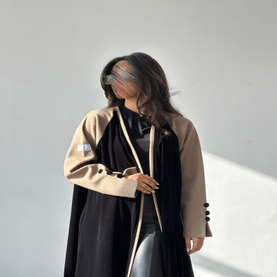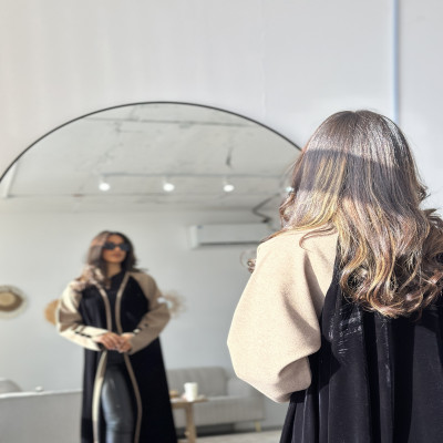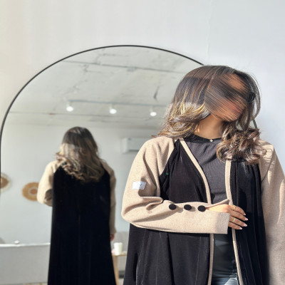 الزاهية B عباية كلوش من المخمل الراقي باللون النيلي مع تدخيله خام الجوخ الملكي على الاكمام ، وبقصة انيقه في نهاية الكم