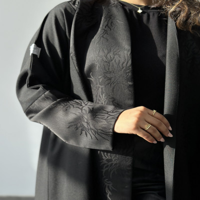 عبايه صيفيه انيقه بتفاصيل مشجره من الامام والخلف والاكمام