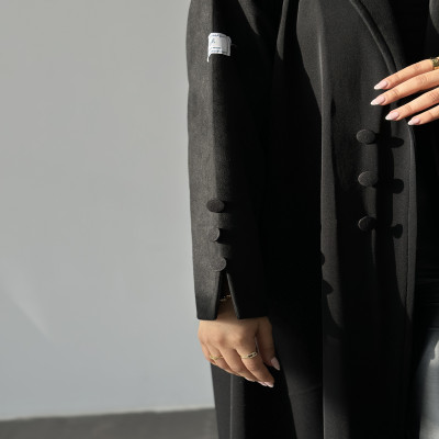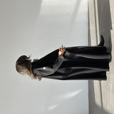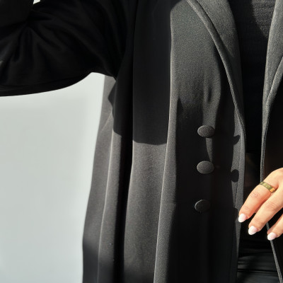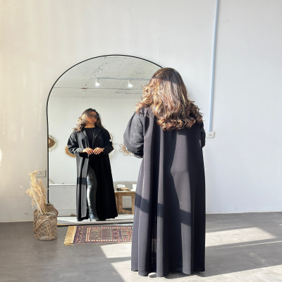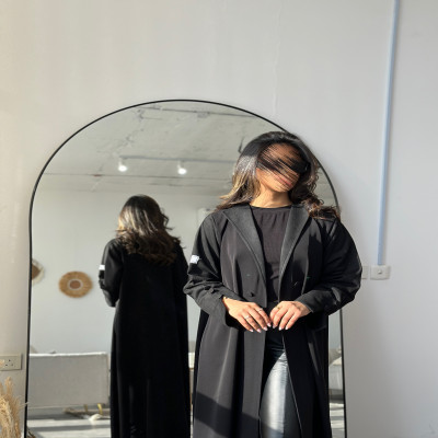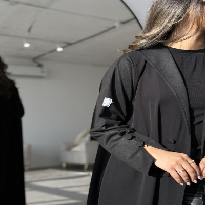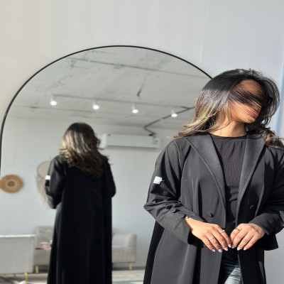 عباية كلوش واسع وبقصة بليزر ، اكمام وياقة من الشامواه و قماش نوع انترنت صيفي