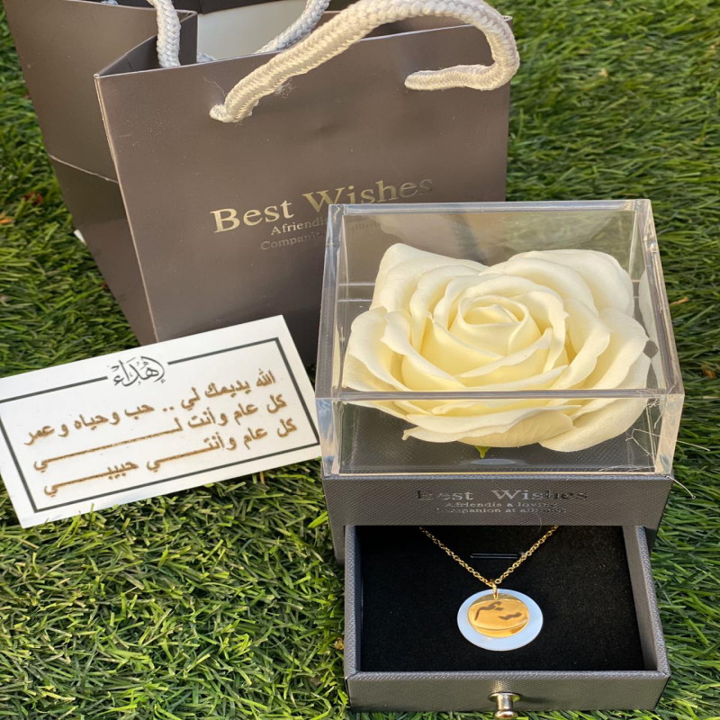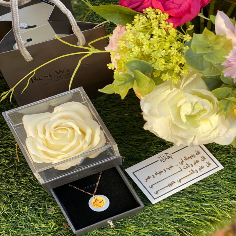 انت مهم بالنسبة لي. ارتدي هذا السلسال دائمًا لتذكرني. سلسال مطلي ذهب ، مصمم بشكل جميل ، مع طبقة من الرخام لإضافة لمسة فاخرة وناعمة ، مع إمكانية كتابة اسم من تحب. سيتم وضعها في علبة أنيقة تحتوي على ورود لإضافة رومانسية تجذب انتباه من تحب.