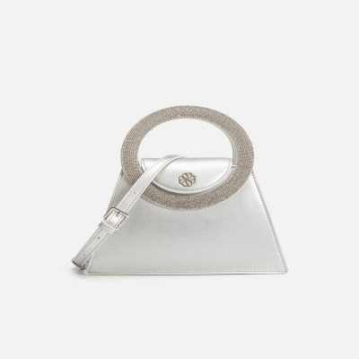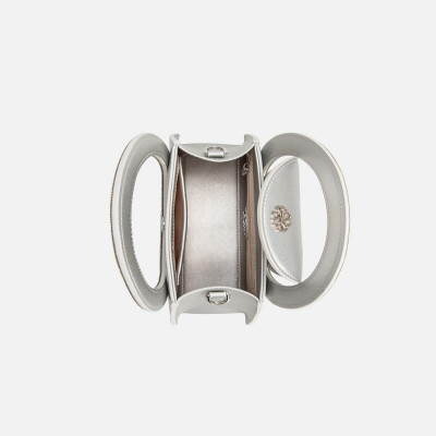شنطة نسائية من ماركة زايروس بتصميم عصري ، تتميز الشنطة بحجمها الصغير وبتصميمها العصري الذي يناسب المناسبات العائلية والسهرات المسائية ، شنطة من الجلد باللون الفضي وتتميز بيد بتصميم دائري لامع و ملفت ومرفق مع الشنطة حزام قابل للإزالة لتتمكني من ارتداء الشنطة بالطريقه المريحة لك ، نسقي الشنطة مع اطلالتك المسائية لتحضي بإطلالة مميزه . ضمان سنة