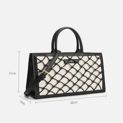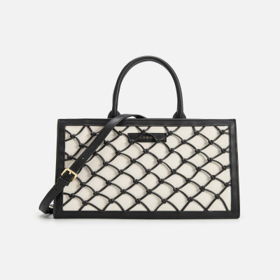 شنطة يد نسائية من ماركة زايروس من الجلد الناعم باللون الأبيض و بتداخل الجلد بلون أسود ، شنطة بتصميم عملي وواسع تناسب إطلالتك في كل الأوقات، نسقي الشنطة مع طلة رسمية او كاجول ، قطعة مميزة تناسب كل الأوقات وبمساحة كافية لأغراضك المهمة . ضمان سنة