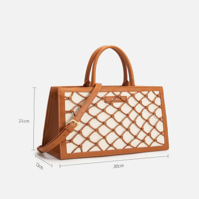 شنطة يد نسائية من ماركة زايروس من الجلد الناعم باللون الأبيض و بتداخل الجلد بلون بني، شنطة بتصميم عملي وواسع تناسب إطلالتك في كل الأوقات، نسقي الشنطة مع طلة رسمية او كاجول ، قطعة مميزة تناسب كل الأوقات وبمساحة كافية لأغراضك المهمة . ضمان سنة
