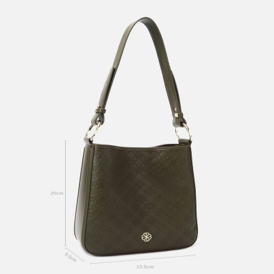بتصميم عملي كلاسيك من الجلد المنقوش بشعار الماركة باللون الزيتي ، تتميز الشنطة بتصميم بسيط وسهل يناسب اطلالتك اليوميه بمقاس الطول= 23.5 سم - العرض= 9.5 سم - الارتفاع= 25سم ، لا تتردي في اضافه هذه الشنطة الى مجموعتك الخاصه لتتميزي بشنطه عمليه أنيقه تناسب كل الأوقات .