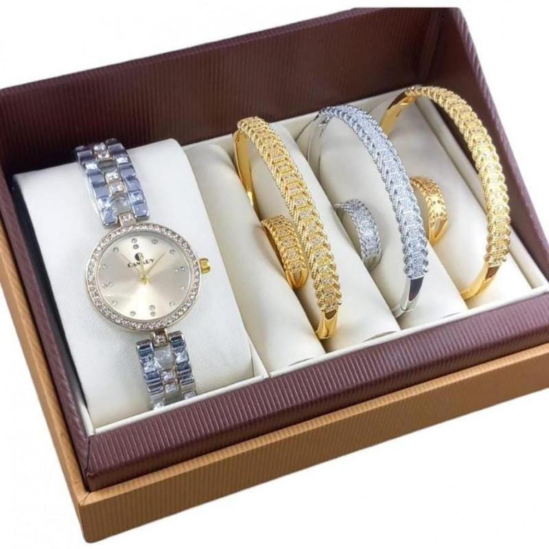 طقم إكسسوار نسائي ساعة مع أساور أنيقة 112211