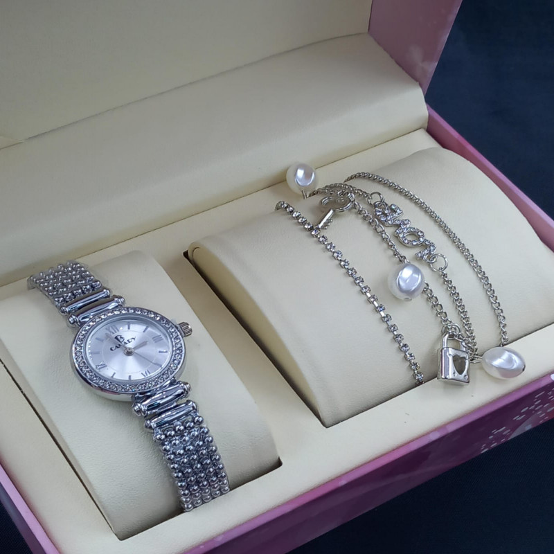 طقم إكسسوار نسائي ساعة مع أساور أنيقة 112226