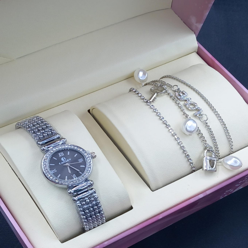 طقم إكسسوار نسائي ساعة مع أساور أنيقة 112232