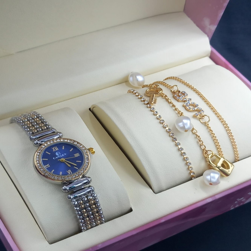 طقم إكسسوار نسائي ساعة مع أساور أنيقة