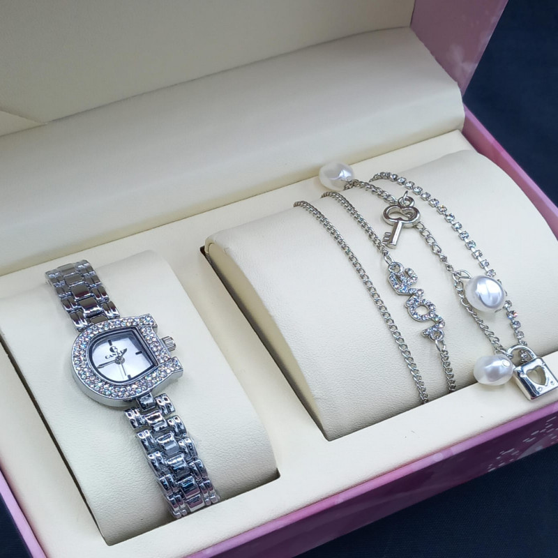 طقم إكسسوار نسائي ساعة مع أساور أنيقة