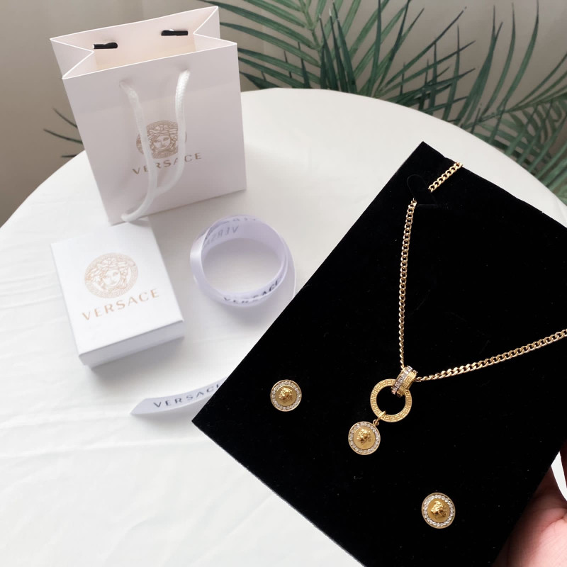 img اسوارة وقلادة نسائية مطلية بالذهب عيار 18 قيراط و مزخرفة بأحجار الراين الوردية
