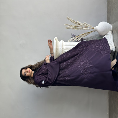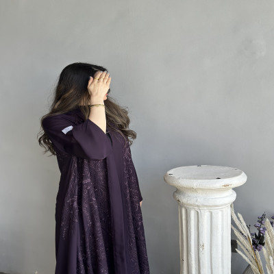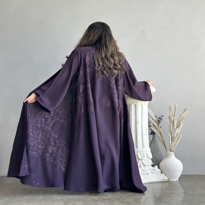 عباية پرپل ترف بقصة كلوش ولون فاتن مطرزة من الامام والخلف