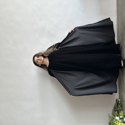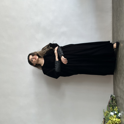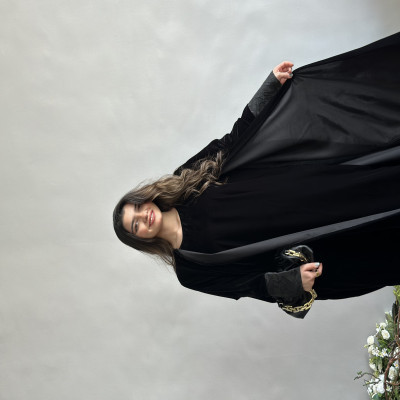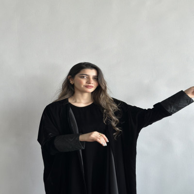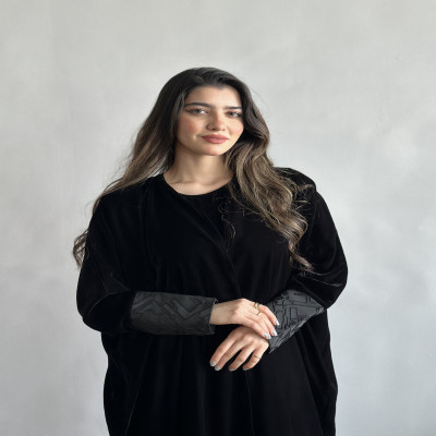 عباية من المخمل الاسود الملكي مع الفستان المخملي الداخلي المتناسق وبتفاصيل مشجره على الاكمام