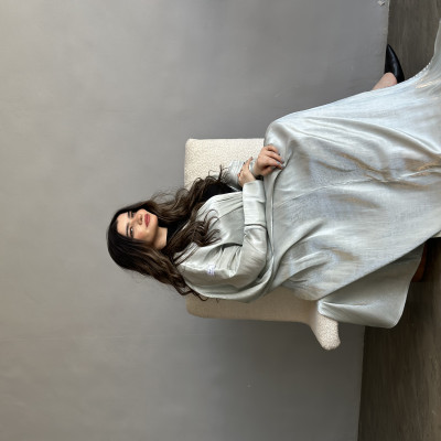 عباية ميتاليك تتميز بقماش ناعم ومزينه باطراف لامعه على اكمام واطراف العبايه