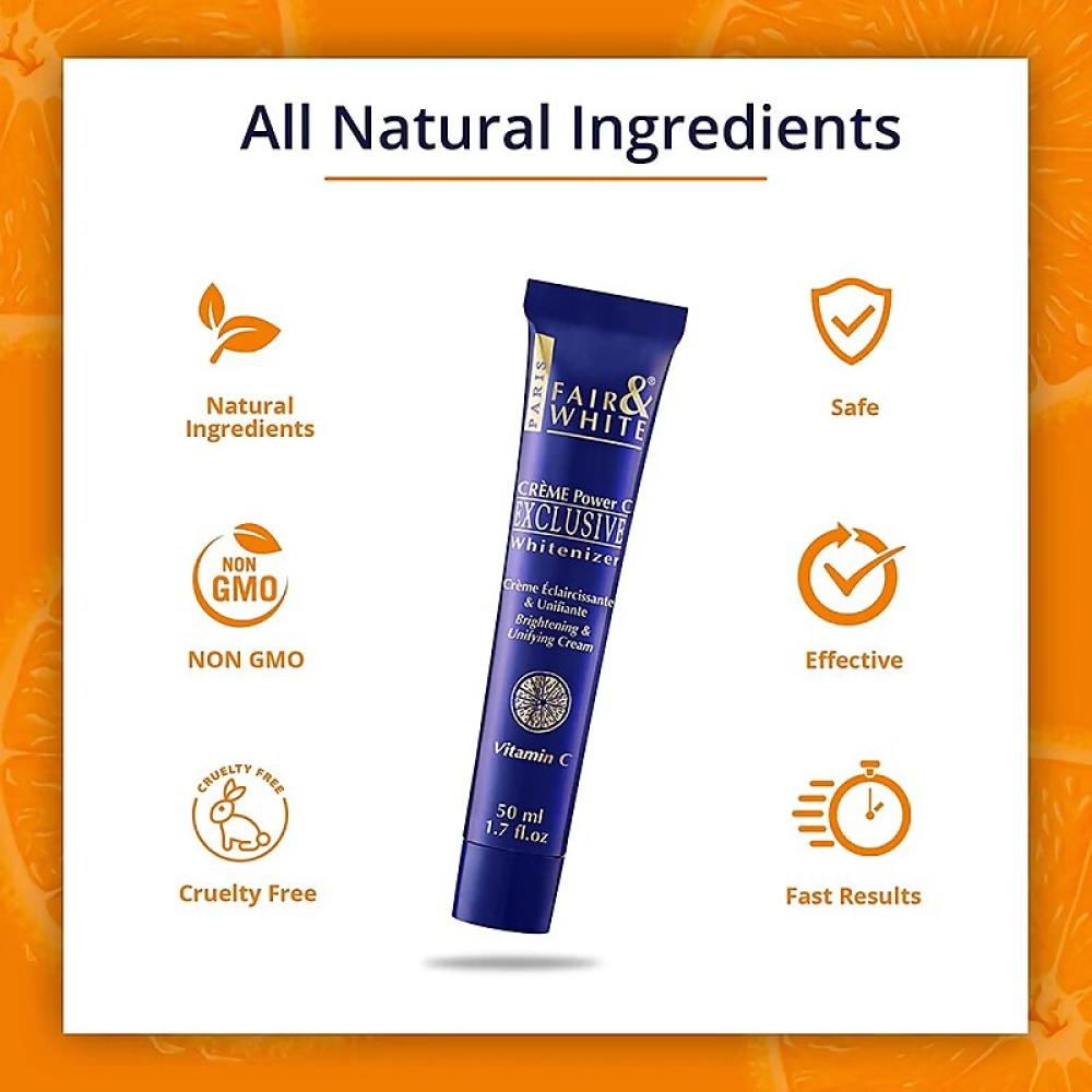 فير اند وايت كريم لتبييض وتفتيح البشرة هو خط فاخر للعناية بالبشرة مصمم لتفتيح لون البشرة وتوحيد لونها. يتضمن الخط مجموعة من المنتجات الغنية بالمكونات الطبيعية مثل فيتامين C ومستخلص عرق السوس والصبار ، والتي تعمل معا لتغذية البشرة وترطيبها بعمق. تم تصميم المنتجات لتقليل ظهور البقع الداكنة وتغير اللون ، مما يجعل البشرة تبدو متألقة ومتوهجة.