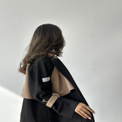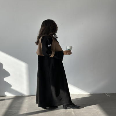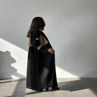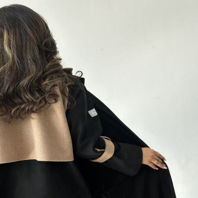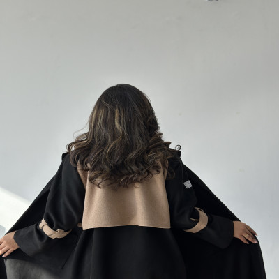 عباية فيكتوريا بليزر بقصه الكوت الراقيه مع جيوب وقماش شامواه اسود و تدخيلات من الجوخ الملكي