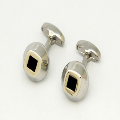 كبك معدني دائري الشكل باللون الفضي مع كريستالة سوداء في الواجهة