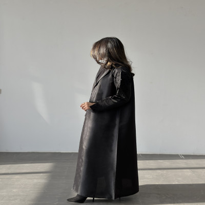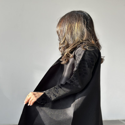 عباية صيفيه راقيه صممت للمرأه الانيقه بتفاصيل من الورود المشجره البارزه على الجانب الايمن بالكامل والكم الايسر